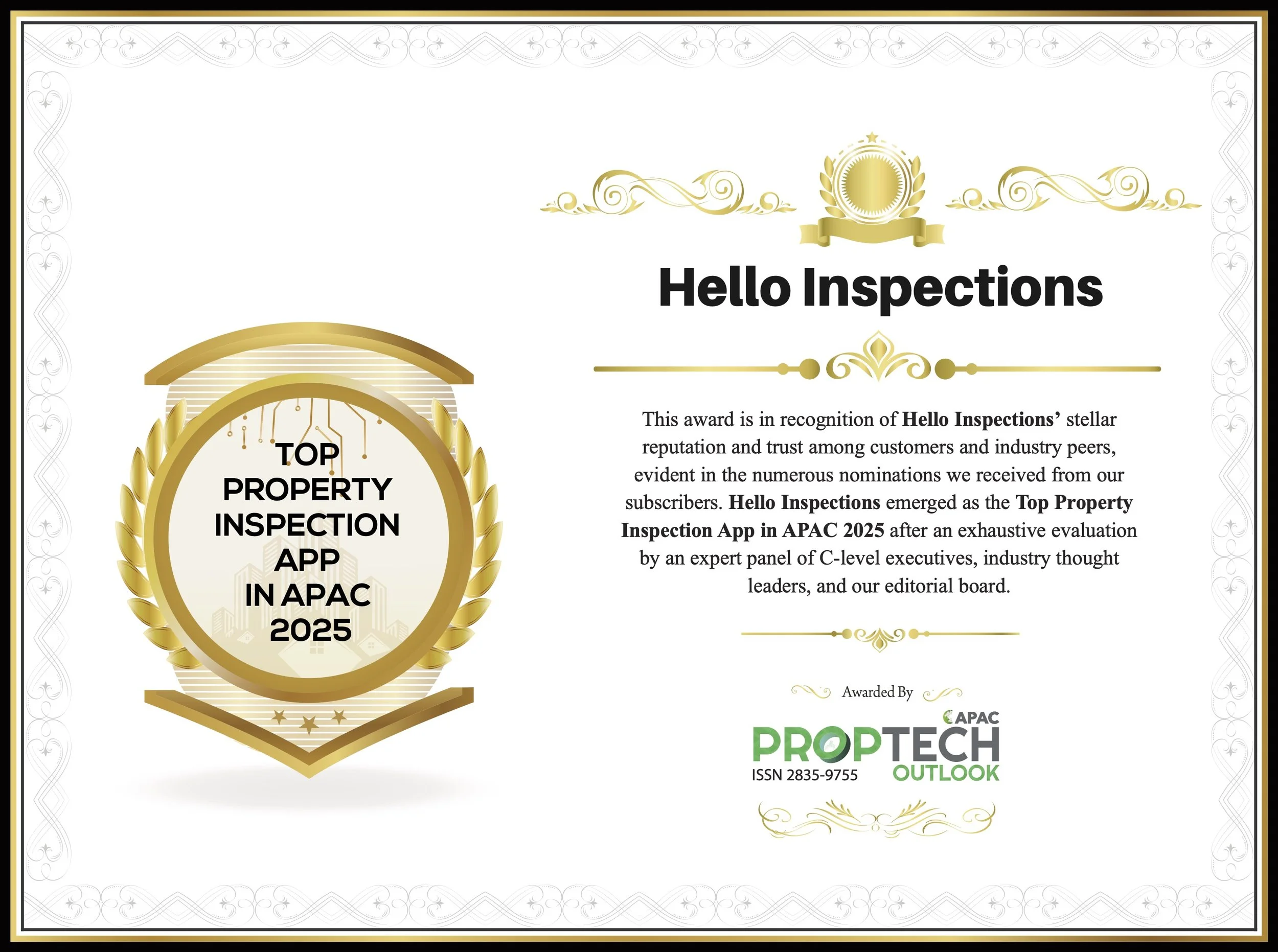 Hello Inspections Named “Top Property Inspection App in APAC 2025”
